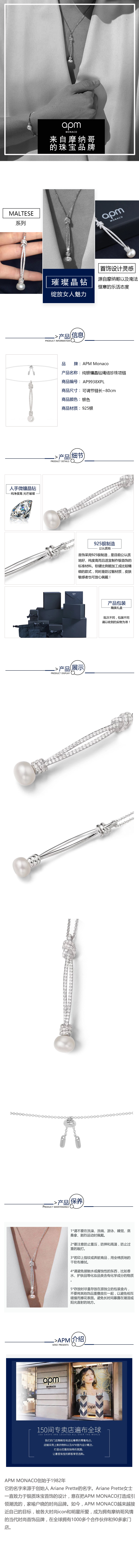 APM Monaco纯银镶晶钻绳结珍珠项链