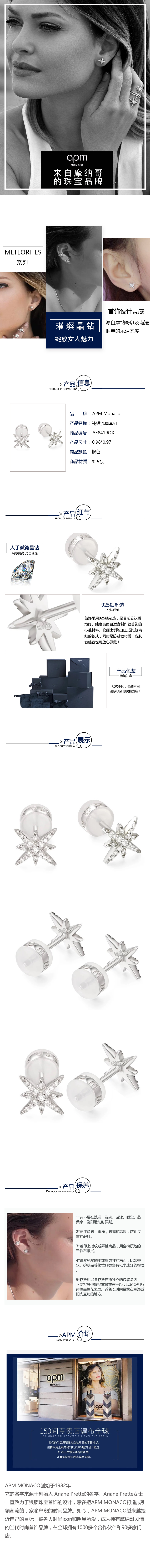 APM Monaco纯银镶晶钻耳钉